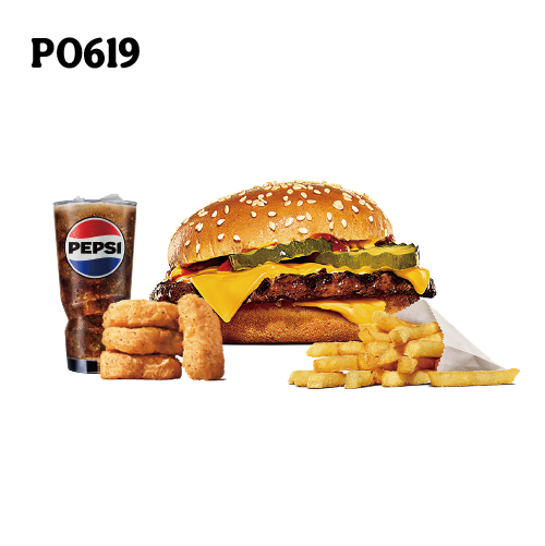 雙起士培根牛肉堡+小薯+四塊雞塊+中飲