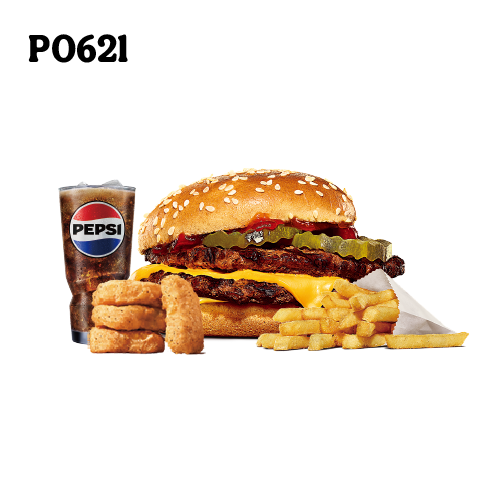 雙層火烤牛肉堡+4塊雞塊+小薯+中飲