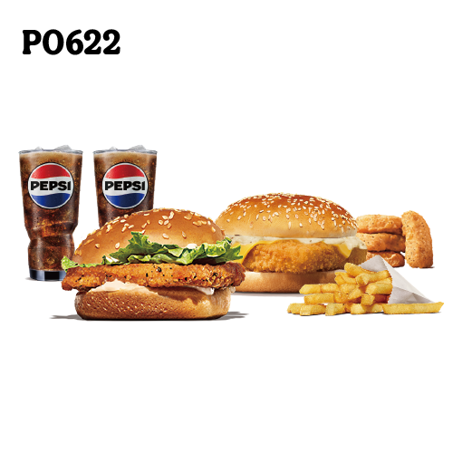 經典脆雞堡+華鱈魚堡+4塊雞塊+小薯+中飲*2