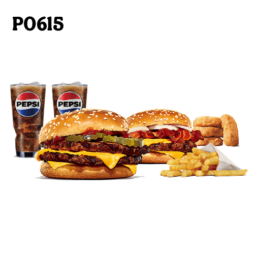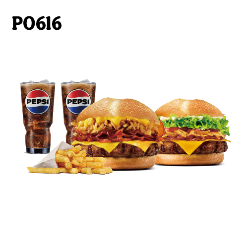 雙層火烤牛肉堡+雙起士培根牛肉堡+4塊雞塊+小薯+中飲*2