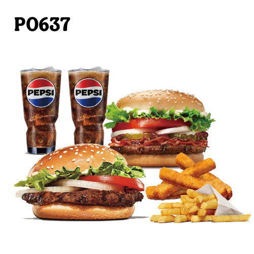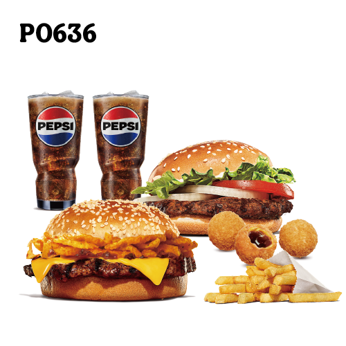 脆洋蔥牛肉堡+田園烤牛堡+小薯+黃金QQ球3入+中飲X2