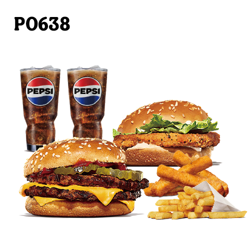 雙層火烤牛肉堡+經典脆雞堡+小薯+雞薯條4入+中飲X2