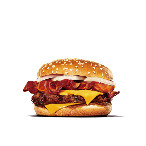 漢堡王雙起士培根牛肉堡,100%純牛肉,恆溫火烤鎖住肉汁,搭配酥炸培根、鮮甜洋蔥以及2片香濃起士,享受多汁火烤美味,拒絕人工香料!