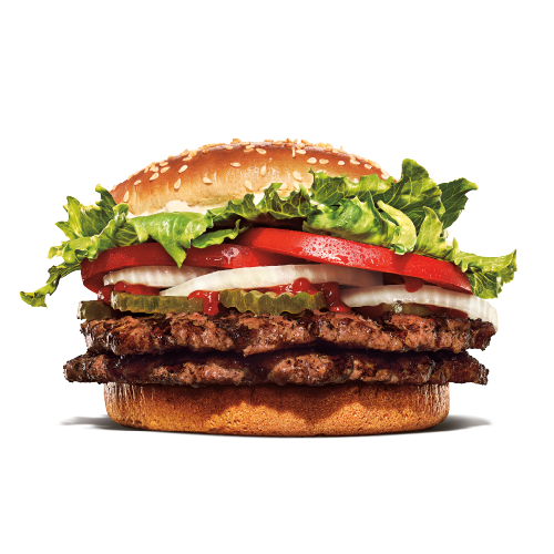 漢堡王雙層華堡,經典美味升級大份量!2層火烤純牛肉,雙倍鮮美肉汁、火烤香氣。無人工添加的大片牛肉、蔬菜+5吋大麵包,平價漢堡也能吃很飽!