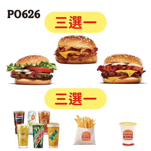 三選一(雙起士培根牛肉堡/花生培根脆雞堡/小華堡(原/辣))+三選一(小薯/小飲/小玉米濃湯)
